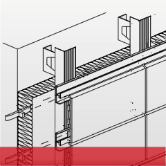 Befestigung durch Nieten von ebenen Fassadenplatten aller Art auf vertikale Unterkonstruktion.